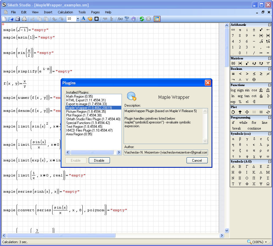 Maple Tools - Symbolic engine for SMath Studio. - Messages