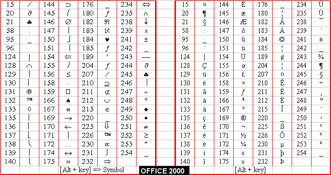 [Alt+key then Symbol] ... [Alt+0key then symbol] (Ä,Å,Ã,Ø,¶,Š,,,)