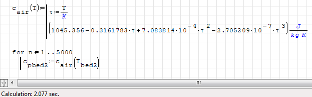 c.air(T):line(τ:T/'K,(1045.356-0.3161783*τ+7.083814*10^{-4}*τ^2-2.705209*10^{-7}*τ^3)*'J/{'kg*'K},2,1)