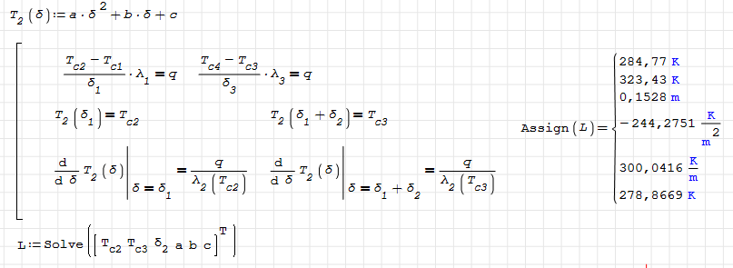 WroteI am trying to plot a temperature field in a three layer wall. There is no problem with the outer layers. But there is a problem in the middle layer - there should be a parabola, not a straight line. How to draw this parabola in the simplest way - with one formula. I know the hard way.