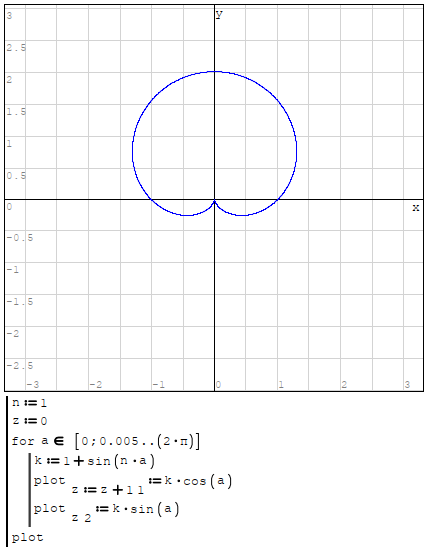 SMath Forum SMath Studio Samples Cardioid 1 Pages (2 items) Cardioid - Shape of Heart (or apple) - Messages Go to last post #1 Posted: 11/22/2020 2:46:36 PM overlord 582 likes in 1,349 posts. Group: Moderator If you change variable 'n', you will get a different shape.Regardscardioid.sm (3.82 KiB) downloaded 788 time(s). #2 Posted: 11/22/2020 7:17:49 PM Jean Giraud 983 likes in 6,866 posts. Group: User Thanks Collab ... 3 times faster version. 1 Pages (2 items) New Posts No New Posts