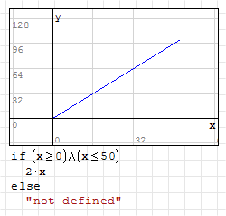 SMath Forum SMath Studio Questions graphs: Function with reduced set 1 Pages (3 items) graphs: Function with reduced set - Messages Go to last post #1 Posted: 12/12/2012 8:46:17 AM loitzl9006 0 likes in 4 posts. Group: User Is it possible to draw a 2D graph - function y=2x, but not for all real x-ses - only from (for instance) x=0 to x=50 ? #2 Posted: 12/12/2012 9:11:34 AM Davide Carpi 1,435 likes in 2,913 posts. Group: Moderator WroteIs it possible to draw a 2D graph - function y=2x, but not for all real x-ses - only from (for instance) x=0 to x=50 ?Hi loitzl9006,Yes it's possible, look the attachment regards,w3b5urf3r If you like my plugins please consider to support the program buying a license; for personal contributions to me: paypal.me/dcprojects #3 Posted: 12/13/2012 1:18:26 PM loitzl9006 0 likes in 4 posts. Group: User That's clever! Thanks a lot w3b5urf3r 1 Pages (3 items) New Posts No New Posts
