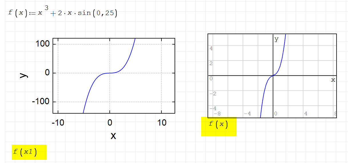 Equation 2 - f(x):x^3+2*x*sin(0.25) solves without vectorization but will not plot. Why?