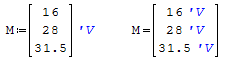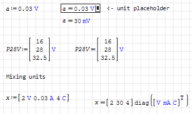 If a declare a Matrix : P28V with three values (16V, 28V and 31.5V) and I want to display the result, the unit will be for each result : kg*m²/(A*s^3)