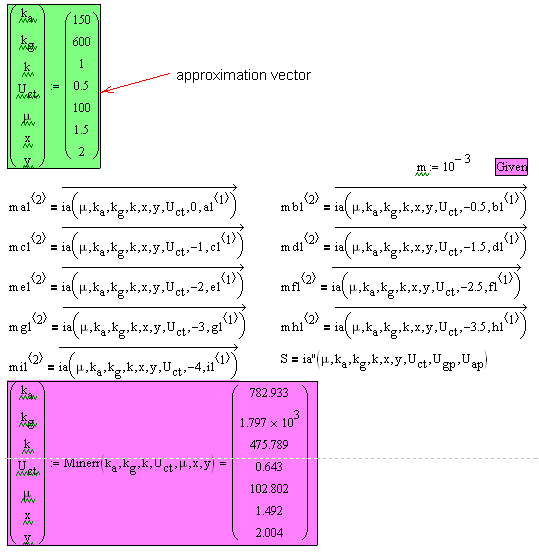I will try in the meantime to draw some conclusions about the results obtained using the FindRoot algorithm (3). By testing the accuracy value, I have managed to get results even closer to those obtained in MathCAD. The problem is that the approximation vector contains values very close to what should be obtained. As soon as I have introduced different values, I have not gotten anything. To get an idea, in MathCAD I got the solution using the approximation in the image. Try with the same approximation to get a solution in SMath. I did not make it. At the same time, it is amazing how with a vectorized function, which has basically introduced a system with a few hundred equations (except for the constraint that I have not used in SMath) the GivenMinerr algorithm in MathCAD has managed to solve the problem with great elegance.