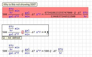 Got it. You force the solution (=) side to keep Q and ΔT as variables. I think I tried everything BUT that!WroteHi. Just write them: " Q*ΔT*'BTU/'hr " in the unit's placeholder.