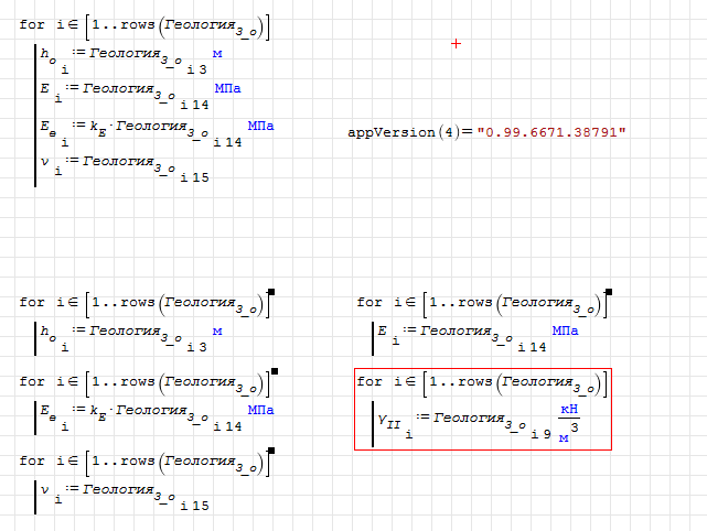 "1) Первая ошибка, которая в нём возникает связана с тем, что в расчёте одни и те же переменные (γ.II, ξ, φ.II, c.II) используются для разных типов данных. Вначале они определены как скаляры, а ниже уже в них происходит запись данных по индексу. Программа полагает, что при этом может произойти неожиданная потеря данных. Потому расчёт прерывается. Дабы исключить эту ошибку, необходимо просто очистить такие переменные: Clear(γ.II,ξ,φ.II,c.II)