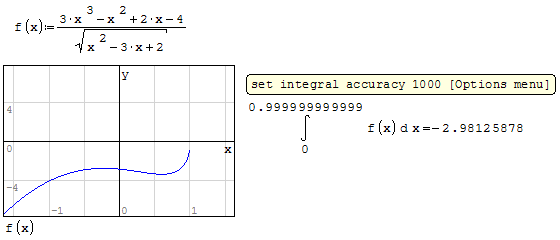 I have the following problem, trying to solve the definite integral int((3*x^3-x^2+2*x-4)/sqrt(x^2-3*x+2),dx,0,1): I get the error "x - not defined" and, of course, no result.