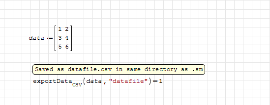 A simple example of exporting to CSV is shown below. Note: you will need to save the .sm before exportData function will work.