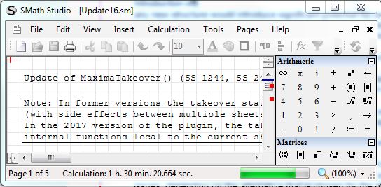 I tried dowloading an running the "Plugin%20Maxima%20Test.sm", but it was calculating for over 10 minutes and seemed to have some calculation failures in it. I am using SMath version 0.98 (build: 6484).