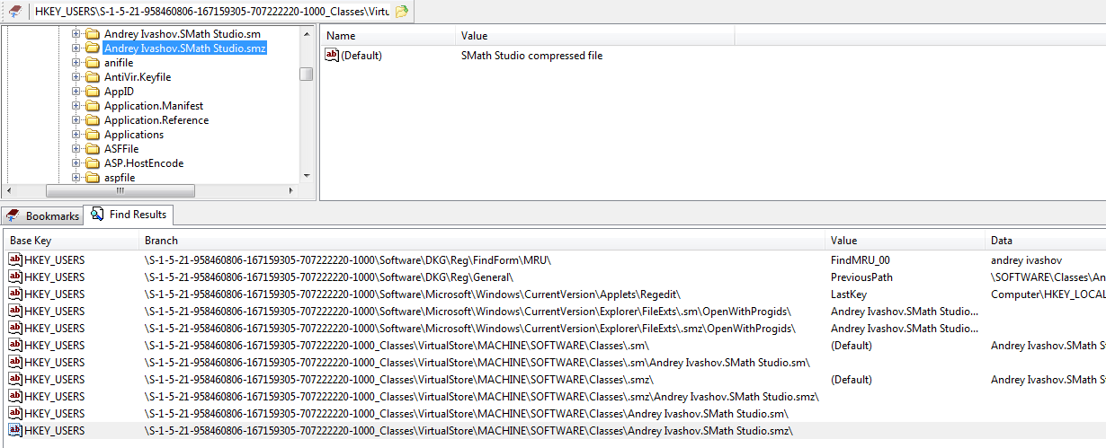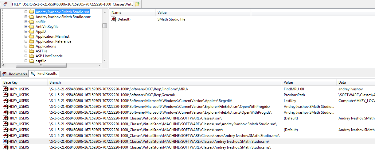 Clé trouvée : HKCU\Software\Classes\Andrey Ivashov.SMath Studio.sm