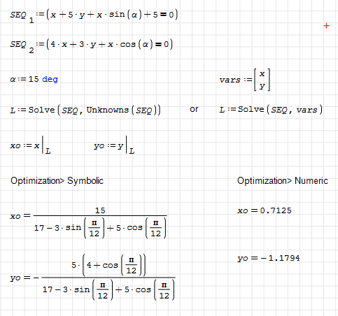 Hi Martin. I use Maxima's ev() because SMath's Assign() only works with the variable names, instead others, like xo, yo, and SMath's at() doesn't works for the symbolic evaluation, as shown this picture: