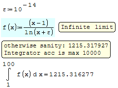 (x-1)/ln(x) [0 .. some reasonable up] try Romberg-Simpson