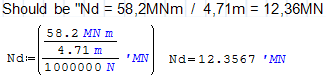 I need the equation that shows Nd = 58,2MNm / 4,71m = 12,36MN, but not Nd = (58,2MNm / 4,71m)/1000000N 'MN = 12,36MN