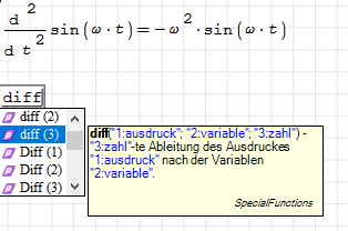 SMath Forum SMath Studio Questions Derivative the 2-d order 1 Pages (3 items) Derivative the 2-d order - Messages Go to last post #1 Posted: 5/29/2023 3:42:44 AM Valery Ochkov 65 likes in 671 posts. Group: User Is there the Derivative the 2-d order in SMath? I see only 1-st order.Thanks! #2 Posted: 5/29/2023 7:43:03 AM Martin Kraska 1,312 likes in 2,228 posts. Group: Moderator It is not in the side panel but you can select it in the dynamic assistant or in the Insert functions dialog. Martin KraskaPre-configured portable distribution of SMath Studio: https://en.smath.info/wiki/SMath%20with%20Plugins.ashx 1 users liked this postValery Ochkov 5/29/2023 8:28:00 AM #3 Posted: 5/29/2023 8:54:18 AM Jean Giraud 983 likes in 6,866 posts. Group: User WroteIs there the Derivative the 2-d order in SMath? I see only 1-st order.As well, you can have multiple derivatives.f(x) is the integrand of erf(x)Cheers ... Jean. 1 Pages (3 items) New Posts No New Posts
