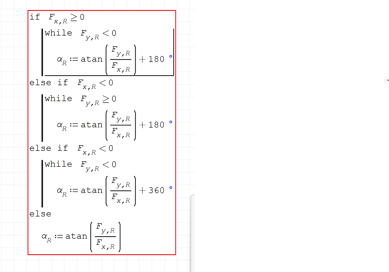 even if Fx,R and Fy,R are negative. The Loop "uses" the formular with +180° and i dont know why. ...