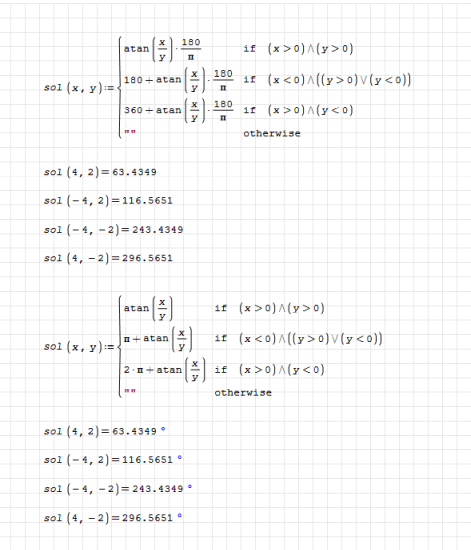 - two-argument form of atan(), in other programming languages, this is atan2()