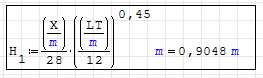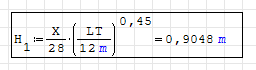 The following examples says that H.1 = X/28 * (LT/12)^0,45 if X and LT are entered in m and the result has the unit m.
