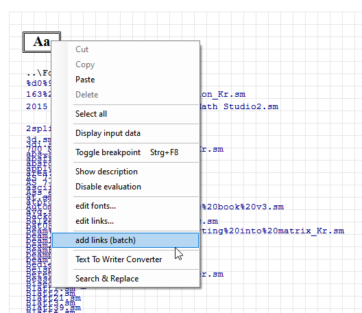 Davide has provided the Text region utilities plugin, which provides means to edit these links from within SMath Studio. The "toolbox" also provides batch generation of links to all files in a given directory. Unfortunately, this doesn't work any more in recent SMath versions.