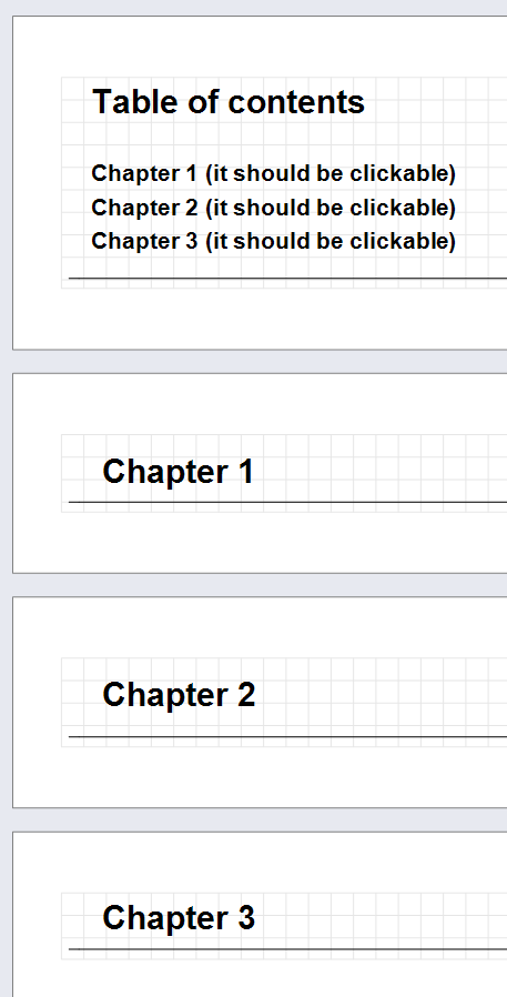Right now, I have a document that's a little bit long and I would like to add a table of contents with the ability to jump to the chapters, like in Word.