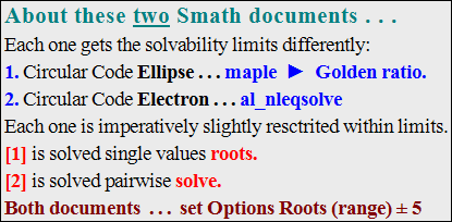 SMath Forum SMath Studio Samples SOLVE Contour Primer 1 Pages (1 items) SOLVE Contour Primer - SOLVE Contour Primer - Messages Go to last post #1 Posted: 5/4/2021 10:37:39 AM Jean Giraud 983 likes in 6,866 posts. Group: User More is in the brew, solving for iso-curve.Not doing as exemplified would complain NO real roots.These two examples are simple lecture guide line, ToolBox.Contour SOLVE Circular Code Ellipse.sm (54.55 KiB) downloaded 805 time(s).Contour SOLVE Circular Code Electron.sm (52.7 KiB) downloaded 825 time(s). 1 Pages (1 items) New Posts No New Posts