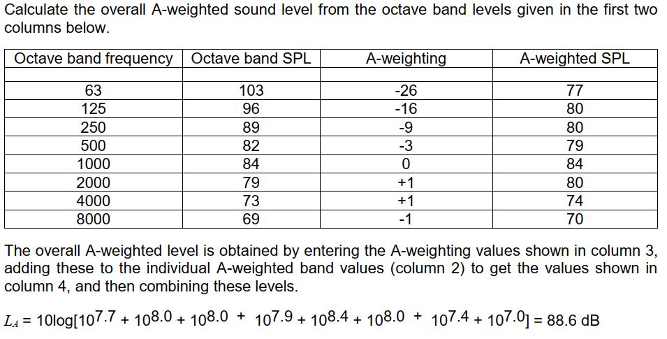 Not sure what you mean by the "summation is the vector sum", if you are referring to the "A weighting" then this is just a simple addition, then the log summation is preformed to obtain the total sound level
