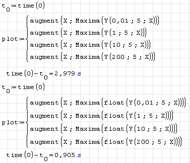 There seems to be an expression size restriction for the Maxima call. If the increment in vx in the bessel plotting example is reduced, than the evaluation process seems to hang and needs to be stopped.