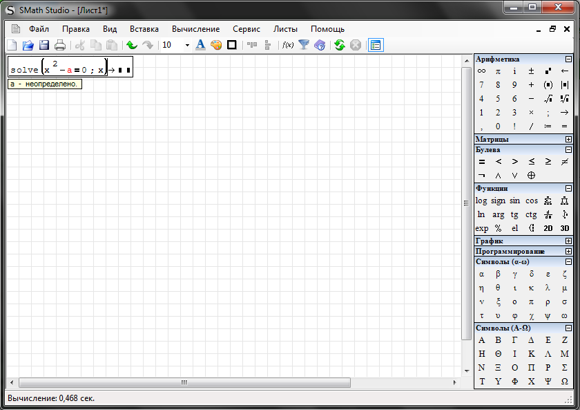 WroteВ Mathcad есть прекрасная возможность символьно выразить переменную из уравнения (даже если при этом в уравнении есть другие неизвестные). В Smath при попытке сделать также выскакивает ошибка, мол "переменная неопределена".