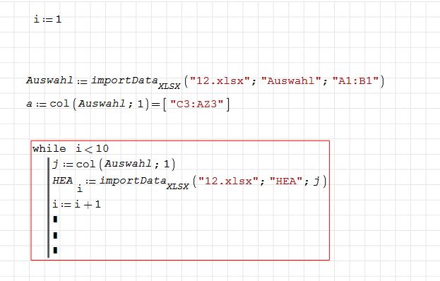can someone help me to solve this problem. Im trying to import more then one colum from excel to smath by using while-loop, look at pic.