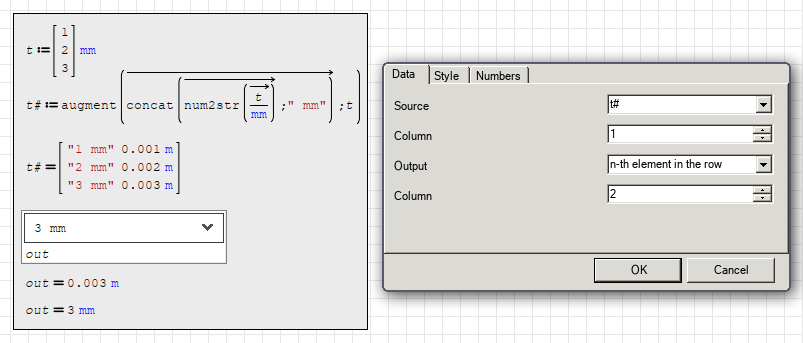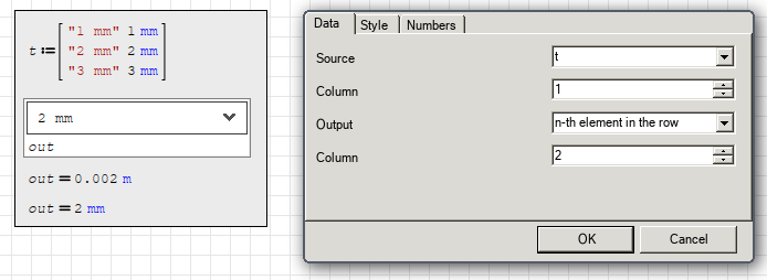 You want your units in combobox as it is intended on your matrix.