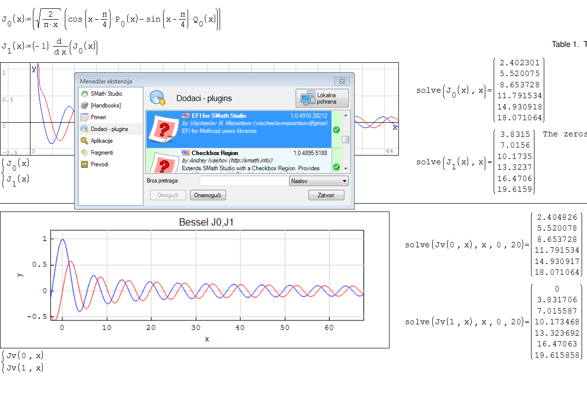 First: Is there any plugin or function in SMath Studio for Bessel functions?