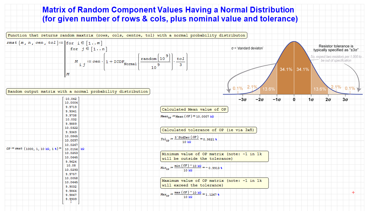 This matrix generator (thanks gUrrozEN) produces random 'equal-probability' values for a given center value and tolerance band.