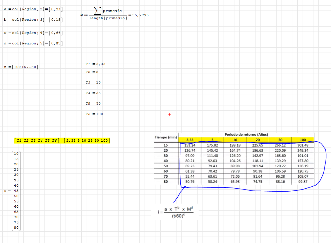 WroteHi, can someone help me with the solucion of this problem that i have, I need to create a matrix with the vector "t" in the first column and in the first row with the values of "T1, T2..T6", and the matrix has to be filled with the equation "I".