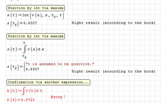 There were mistakes in your file. You should pay attention to definite and indefinite integrals and the function arguments when using definite integrals. See the picture with corrections and hover the expressions in the file to see the difference.