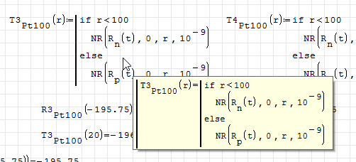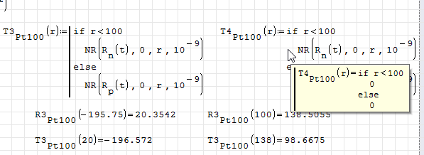 Since the RTD equations differ for t>0°C and t<0°C I started with an if() statement. But I couldn't seem to pass that to my N-R function, as shown here (with the cases() solution).
