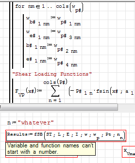 WroteAttached is an older worksheet for simple span beams. It used to "work". However, now I receive an error "Variable and Function Names Can't Start With Number". I can't seem to find this error.