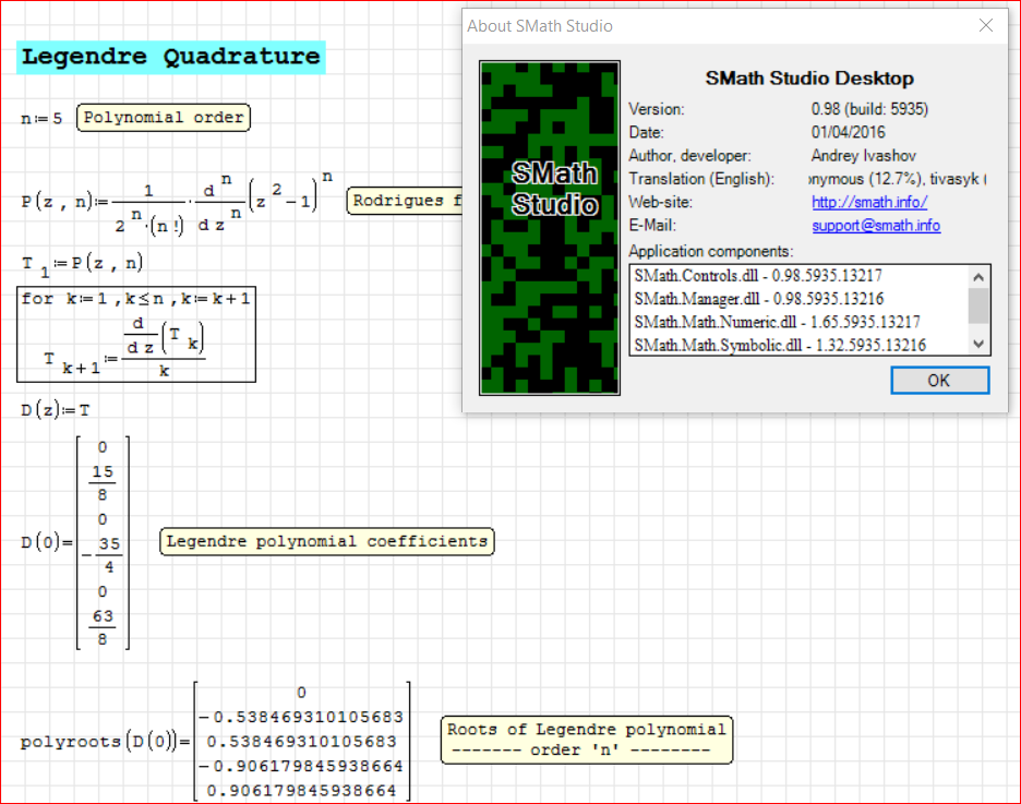 WroteYour "Forum Legendre Test.sm", file does not work correctly in the current version of SMath Studio that I have installed.