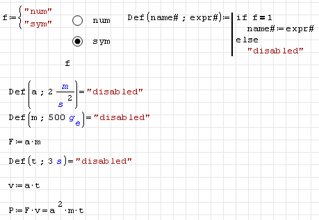 I do not think a global switch is the thing an average engineering user wants. The purpose is to show the dependibility. So only for a selected number of results I want the numerical result and the symbolical result just close to each other. If you define 20 variables and make long calculations you would like to know which variables affect the numerical result and which ones don't.