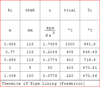Starting from the beginning: just to practice a little bit with programming in SMath (I'm NOT an expert at all), I wanted to set up a small calculation file to determine temperature profiles into big pipelines equipped with internal refractory linings and external insulation layers.