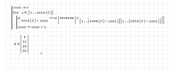 Lets say the matrix is 10 x 10, I don't want the user to have to "manually" create all the steps to get to the tr(reverse), this is a lot of work and could introduce errors. What I want is a simple (if it is indeed simple!) loop to do it.