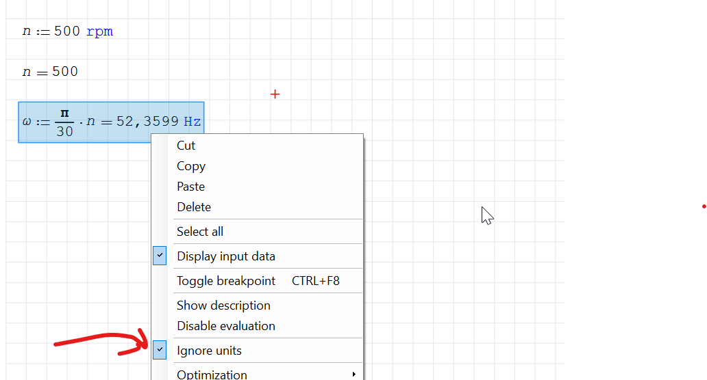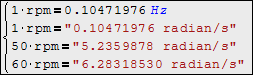 I've seen a few threads on this forum discussing the confusion with rpm unit. I'm not going to claim that this unit has wrong definition in SMath since it looks like it's just defined differently than one might expect. Anyway, can you tell me how to convert rotational speed in rpm to angular velocity in rad/s without having to get rid of units in the whole document ? I need a correct value of angular velocity for further calculations.