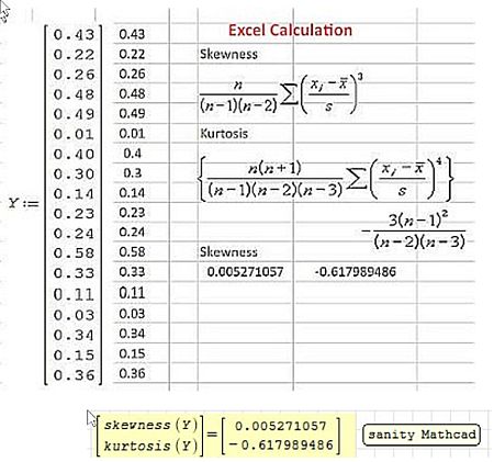 OriginLab 7.5 kurtosis = same as Mathcad [-0.618]