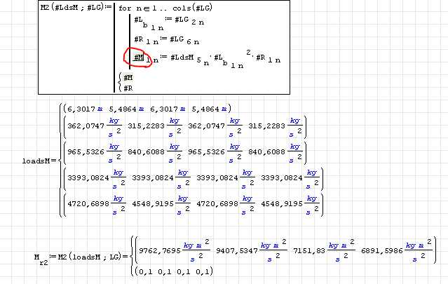 In your worksheet, when you define [math eng]el(b.trib,1)[/math] inside the function, SMath as first thing attempts to replace the first matrix element; because doesn't exist yet as local variable, Smath looks in the worksheet for a global variable: if exist will be used as base inside the loop (and here you are back to the issue of the first post), otherwise initialize an empty matrix. Using a name "hardly utilizzable on the canvas", you skip any issue.