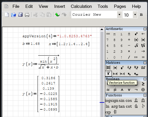 Seems to be a very old version of SMath Studio (display of ranges, round matrix brackets). May well be that the vectorize function isn't available yet in that version. You might consider upgrading or you have to use an explicit loop with for or while.