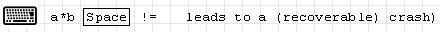 after a*b typing space extends the underline cursor to the expression a*b. When you then type !, the underline shrinks to b! and typing = causes the crash.