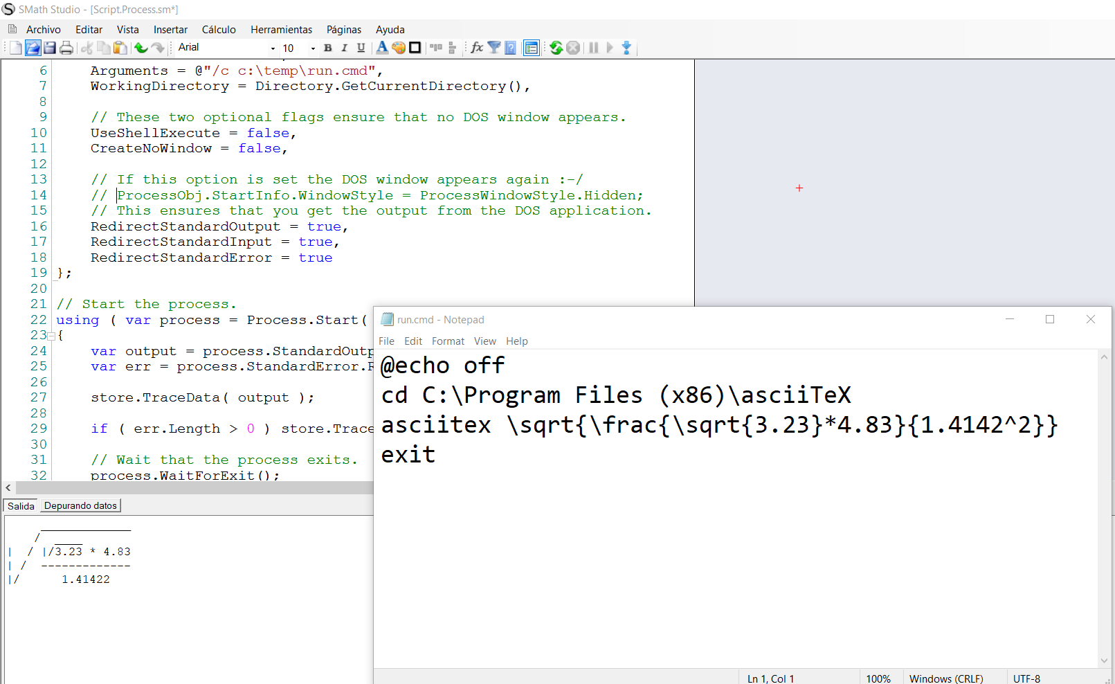 By the way, I'm trying a fancier solution, by using ScriptRegion and a DOS app to render equations to plain text, as you can view: