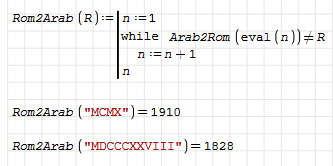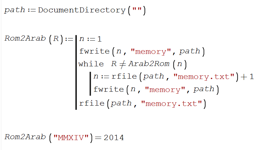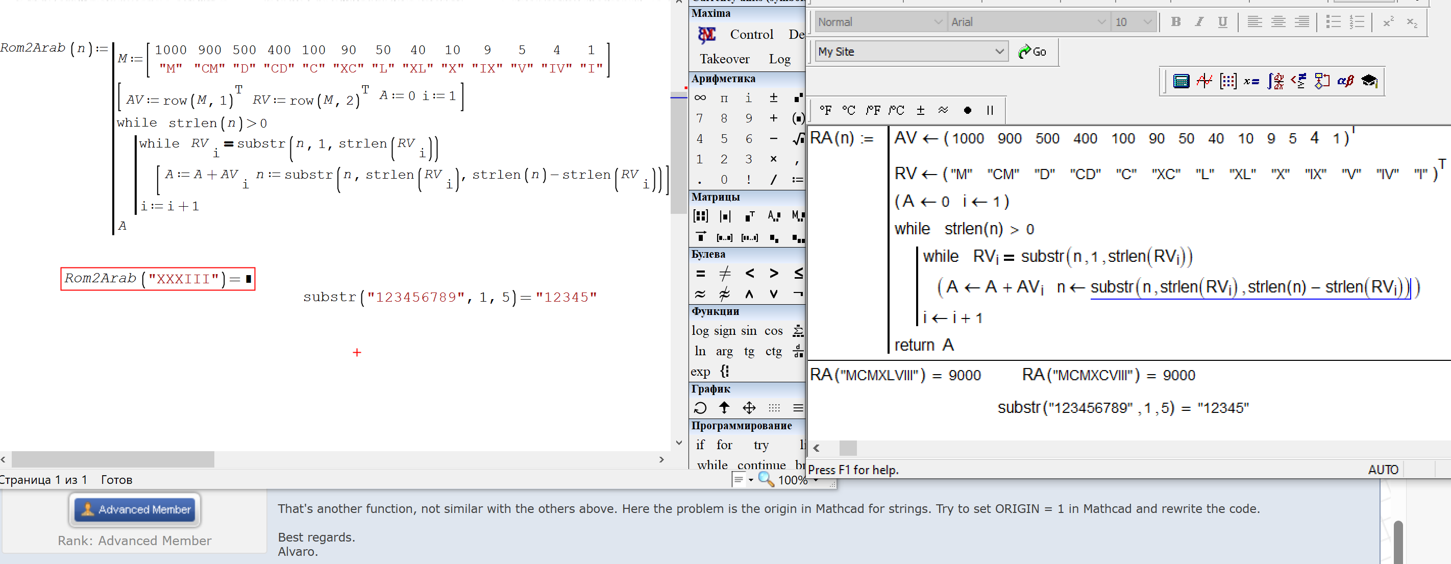That's another function, not similar with the others above. Here the problem is the origin in Mathcad for strings. Try to set ORIGIN = 1 in Mathcad and rewrite the code.