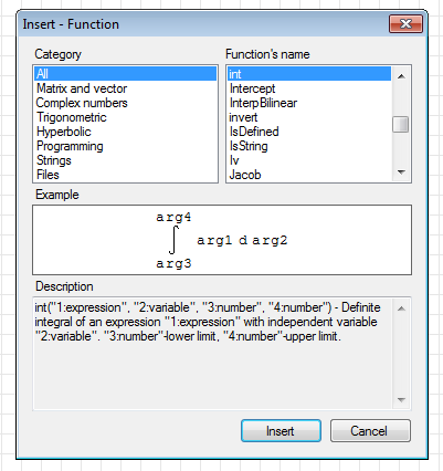Wrote'int' from the fx menu is the definite integration