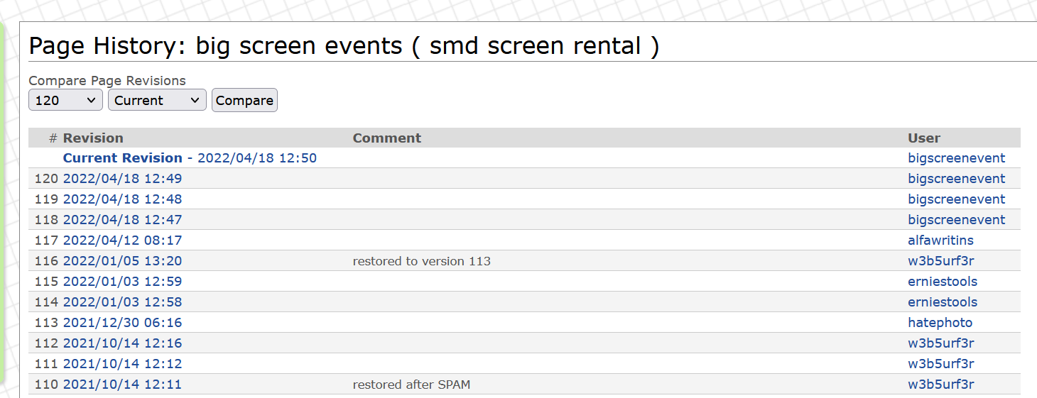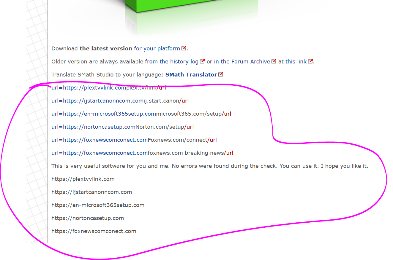Attached is the history of the wiki showing when the non-SMath content was inserted.