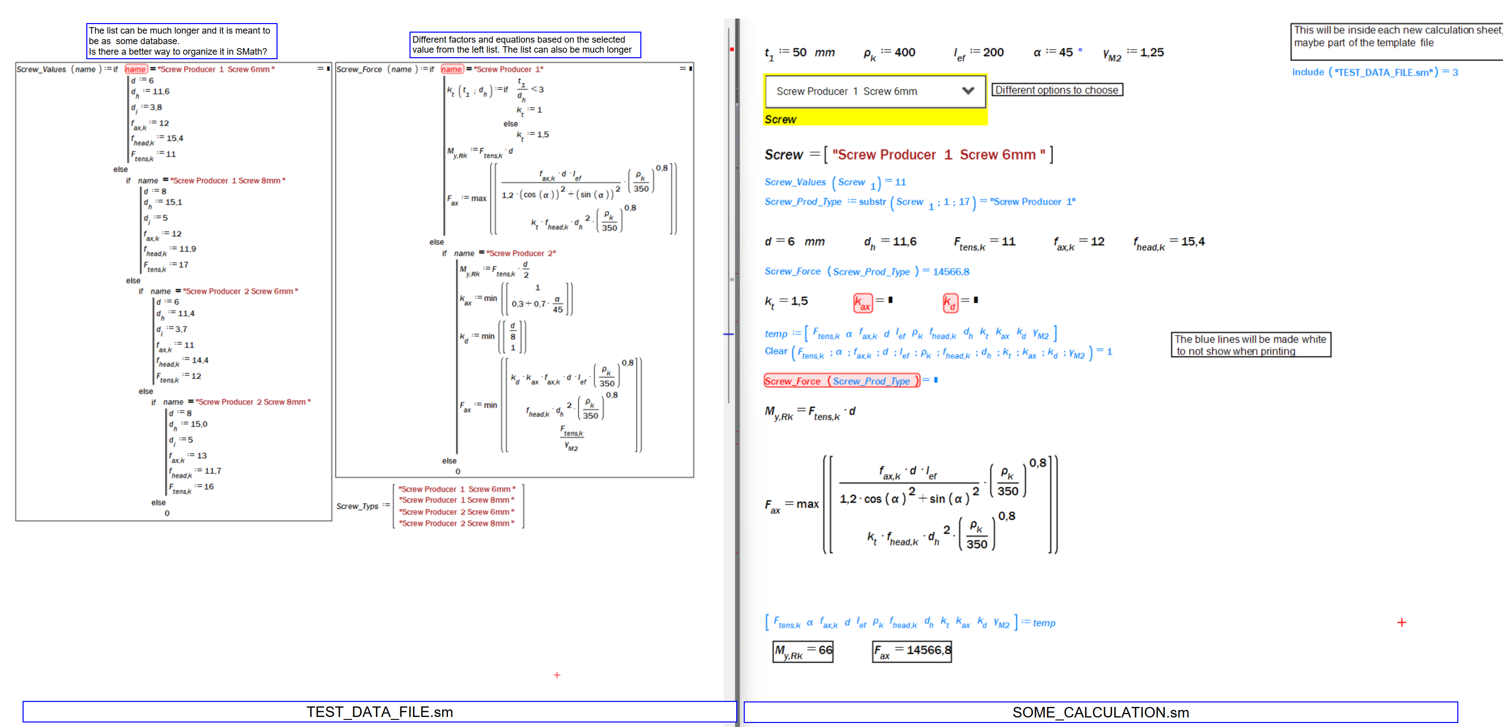 calculation rules and formulas in a way that most of it is stored in a single SMATH file.